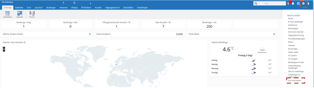 Step 1: Klik på tandhjulet, vælg derefter site informationer