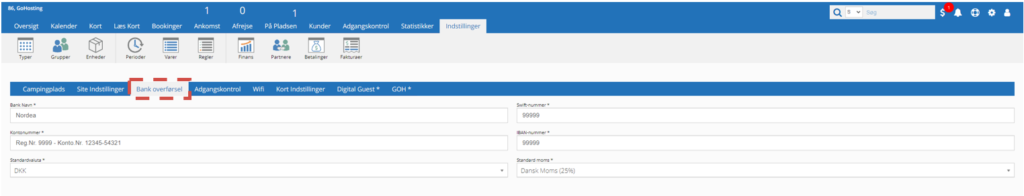 Hvordan kan jeg indsætte bank oplysninger i booking systemet?