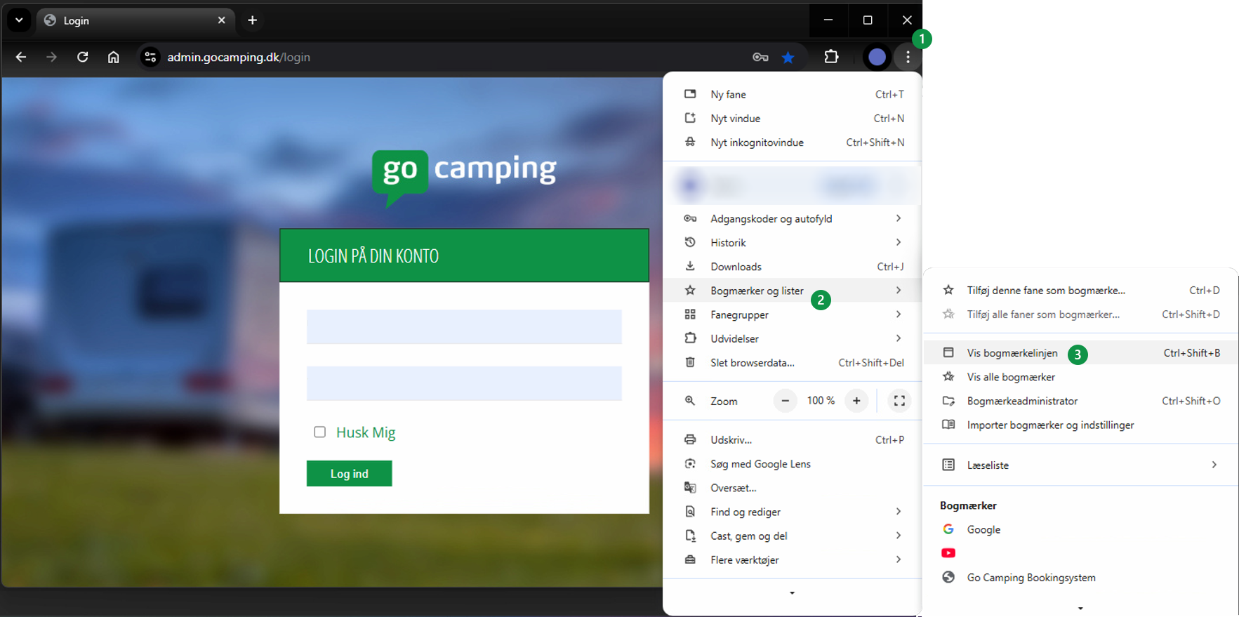 Klik på de 3 lodrette prikker i øverste højre hjørne i din browser.