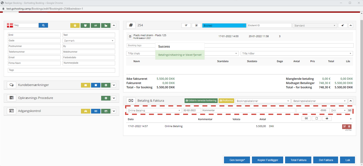 Step 4: Når pengene er tilbageført til kundes kreditkort, skal du lave en total faktura, hvilket gør at fakturaen bliver lavet som en kreditnota. Denne kreditnota kan du med fordel, sende til kunden som dokumentation for krediteret beløb.
